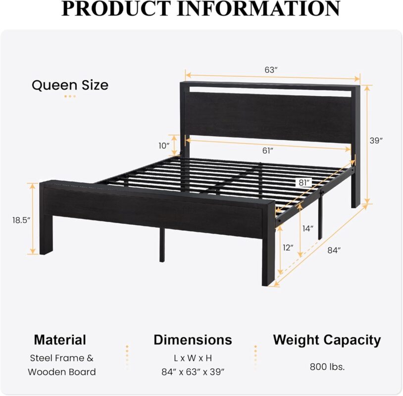 SHA CERLIN 14 Inch Queen Size Metal Platform Bed Frame with Wooden Headboard and Footboard, Mattress Foundation, No Box Spring Needed, Large Under Bed Storage, Non-Slip, Black Oak