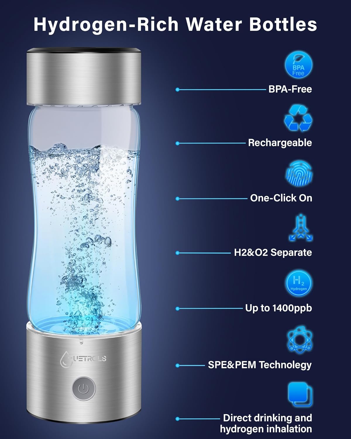 • Perfect Health Gift: With a one-button start/stop function and slip-resistant EVE pads, the hydrogen-rich water bottle is suitable for various settings such as the office, work, or workouts. It makes an ideal health gift for occasions like birthdays, Thanksgiving, Christmas, New Year, and anniversaries, providing antioxidants for improved muscle recovery and reduced physical fatigue after fitness activities.