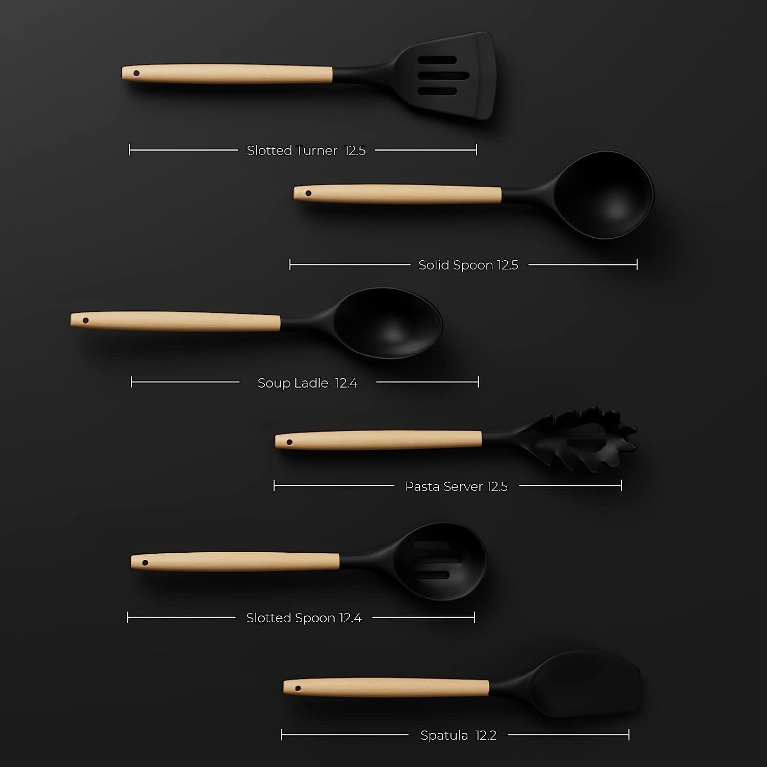- FOOD GRADE KITCHEN UTENSIL SET: This 6-piece kitchen utensil set is made of food-grade silicone and sturdy acacia wood that is heat-resistant up to 464°F. Sturdy and flexible, it is an ergonomic kitchen utensils with reliable quality, comfortable to use and great value for money.