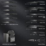 - HIGH QUALITY KNIFE SET: All blades are forged from high carbon stainless steel and wrapped with a black rust-resistant layer on the surface of the knife using BO oxidizing technology, which is good at preventing rust and dirt. Juice is not easy to contaminate, easy to clean and more corrosion resistant.