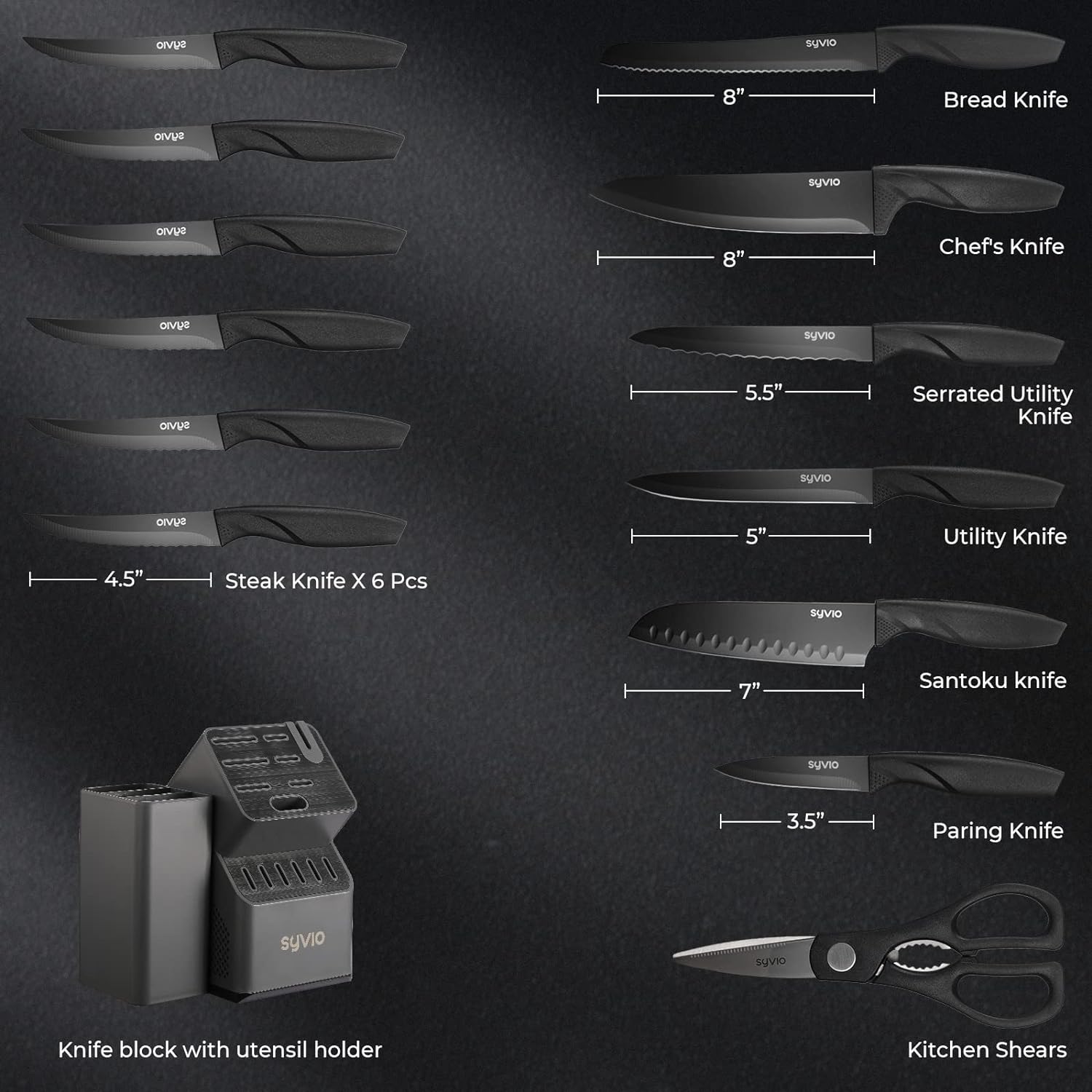 syvio 21-in-1 Kitchen Knife Set, Knife Sets with Block and 6 PCS Kitchen Utensils Set, Knives Set for Kitchen 15 Pieces with Built-in Sharpener, Utensils Holder for Storing Kitchen Tools